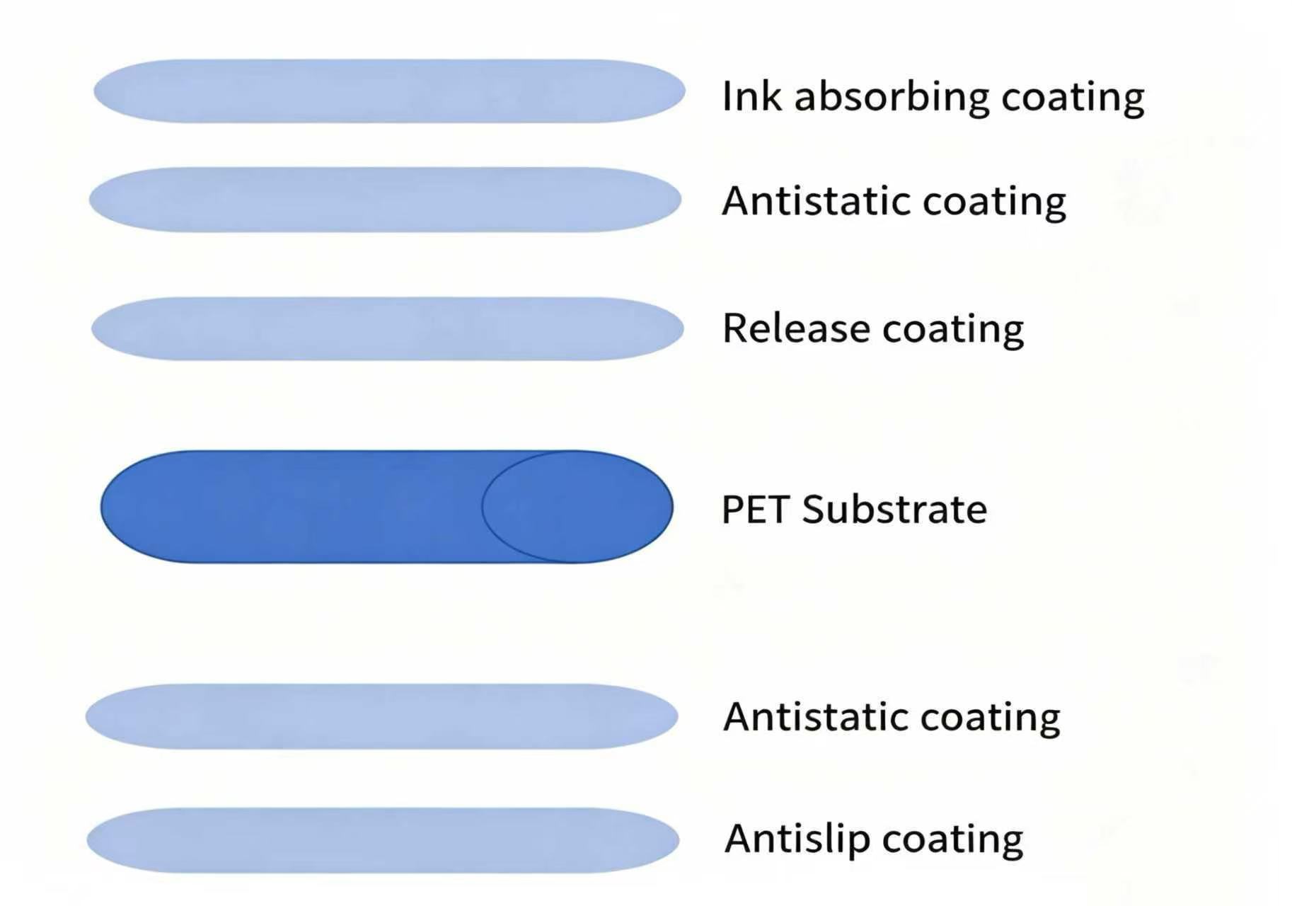 قد يؤدي ضعف امتصاص الحبر إلى اختلاط الأحبار البيضاء والملونة أو حتى سيلانها على الفيلم. من الضروري اختيار أفلام ذات امتصاص عالٍ للحبر.-الطلاءات الماصة. تركيبات مثل معطف-516(محتوى المواد الصلبة 25±2%، درجة الحموضة 4.0–6.0) توفر امتصاصًا قويًا ومتساويًا للألوان الزاهية.